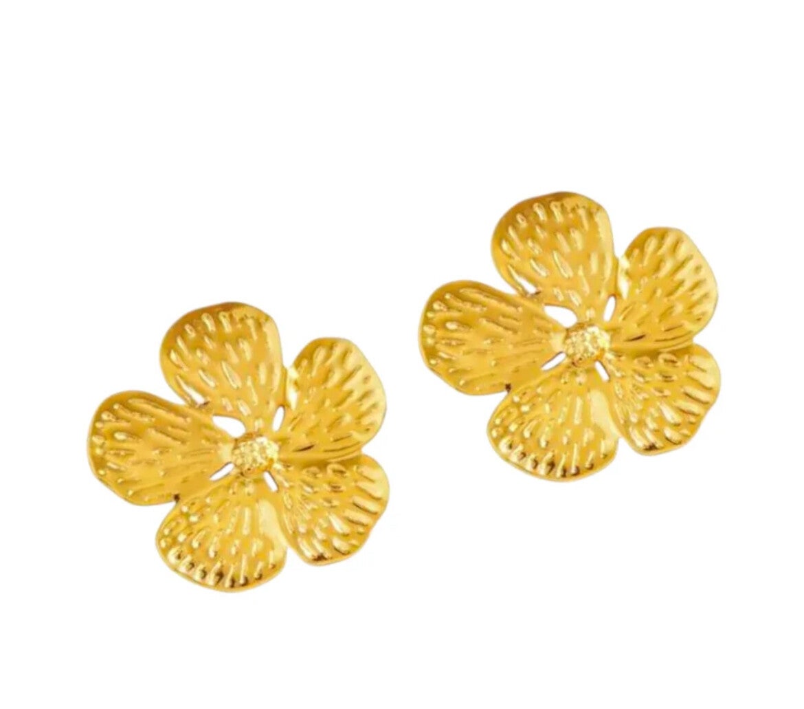 Goudkleurige bloem statement oorstekers